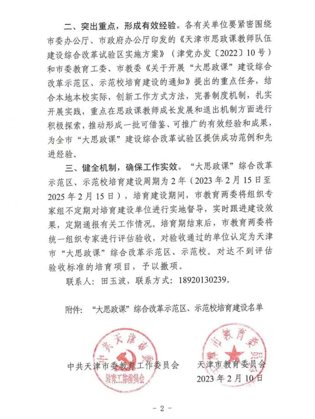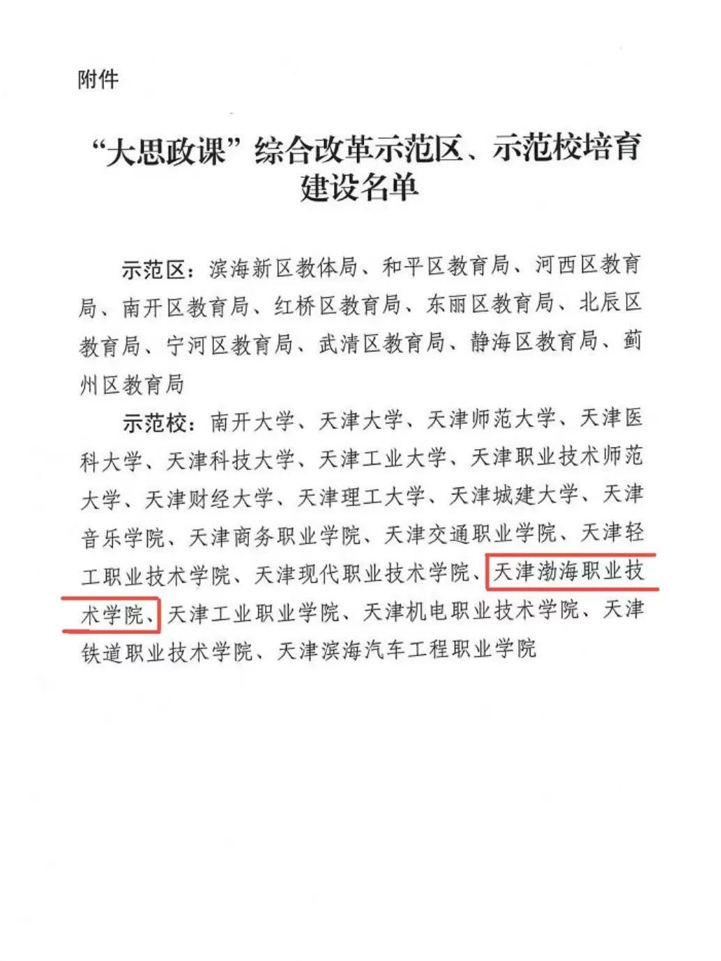 2月13日,央广网发布《关于“大思政课”综合改革示范区、示范校培育建设名单》天津渤海职业技术学院