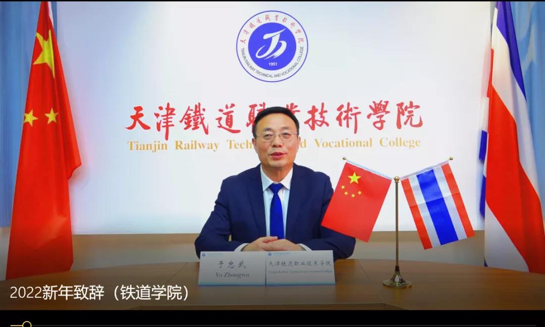 于忠武在致辞中回顾了2021年取得的成绩,泰国鲁班工坊铁院中心技能大赛研发区投入使用,泰国鲁班工坊以优异成绩通过了专家评估验收,开创了“一坊两中心”的建设模式。他表示,工坊建设硕果累累,得益于中泰双方政府的大力支持与肯定,得益于两校的齐心 协力与密切配合。未来将相互支持,携手向前。