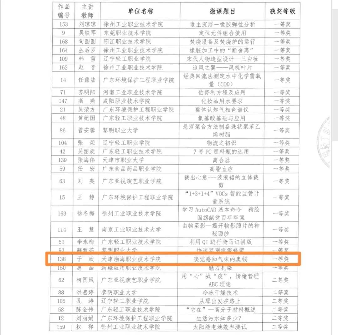 近日,学院教师参加了全国轻工职业教育指导委员会举办的第三届全国职业院校轻化工类微课大赛。此次参赛的243件作品中,学院共10件作品分获一、二、三等奖。