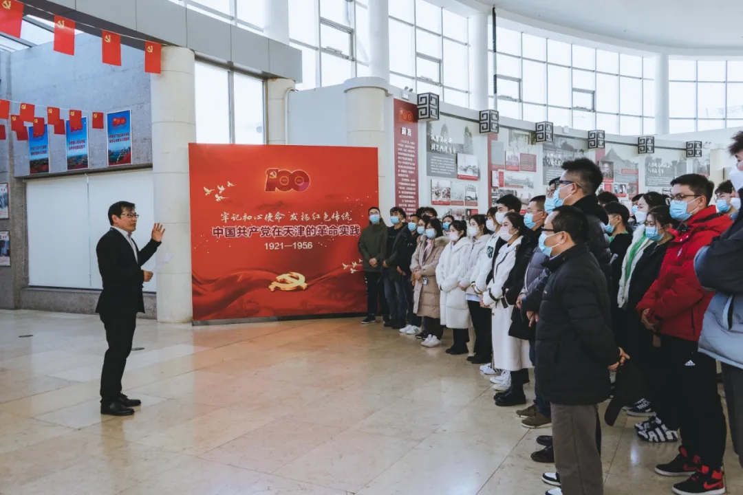 上午,师生实地走访了滨海新区知名企业。通过参观交流、观摩体验,近距离感受企业文化、发展理念以及发展现状,深刻感悟科学技术带给产业创新与发展。下午,师生们参观了滨海新区博物馆,申奕从党的十九届六中全会召开的背景和重大意义等方面进行了微党课宣讲活动。随后,讲解员对"沧海桑田、盐兴漕畅、海门古塞、工业兴邦、沽口曙光、明珠璀璨"等展区进行解说。师生驻足观看文字、图片、音像、实物、视频等,把滨海新区作为一个缩影,深刻感悟中国共产党百年奋斗的重大成就。