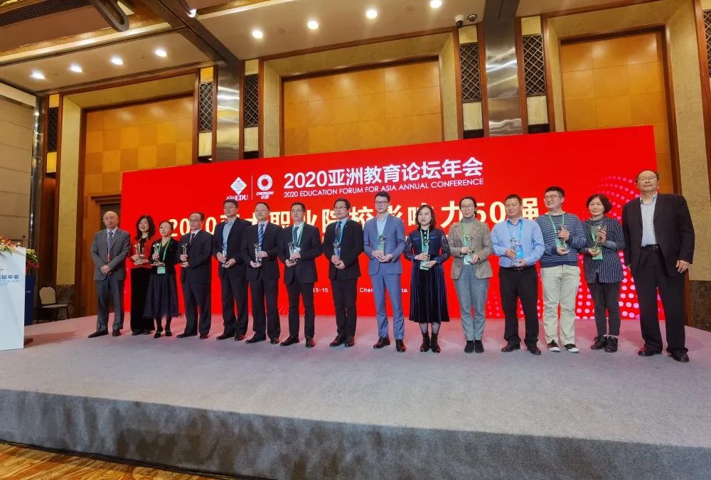 11月13日-15日,“教育之光,点亮未来”2020年亚洲教育论坛主题年会在成都举行,来自30多个国家的800余位教育精英聚焦国际教育交流,共话教育质量提升与教育创新发展,探讨后疫情时代的教育发展走向,会议发布了“亚太职业院校影响力50强”名单,学院再次荣获年度亚太职业院校影响力50强,这是继2018年首获殊荣后再次榜上有名。