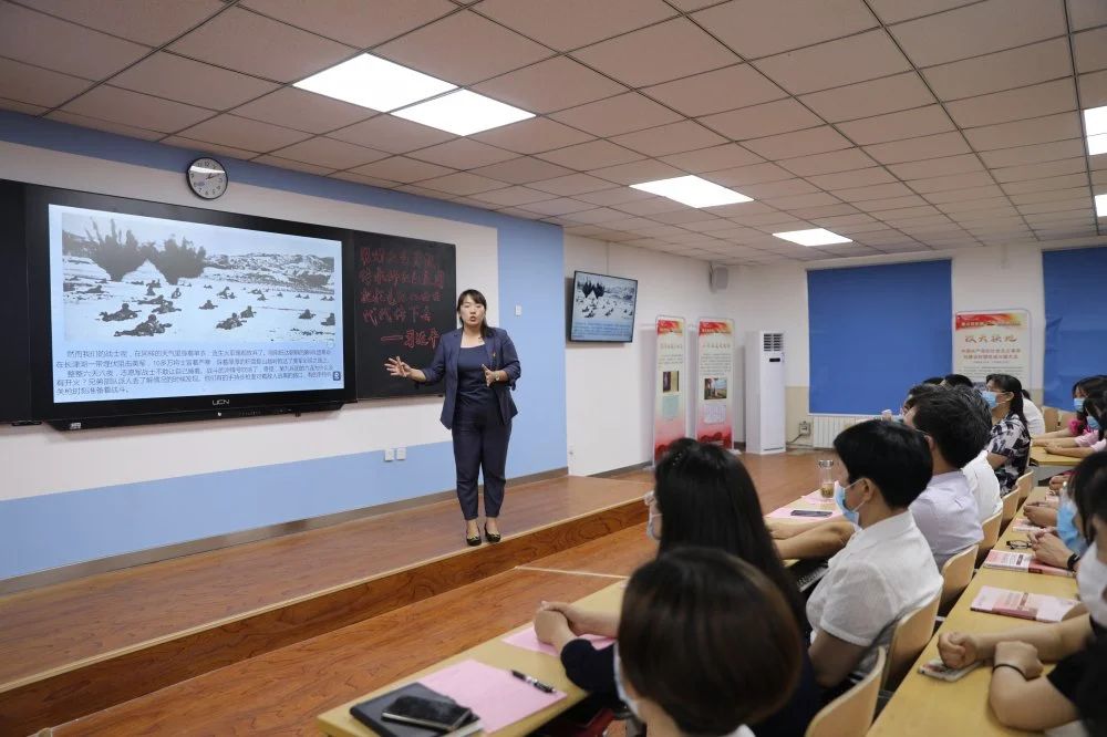 课堂上风云激荡,一个个隽永的红色故事流淌而出、叩击人心。老师们精心准备,选取了党的百年历程各个阶段中的感人红色故事,反复排练打磨,精益求精,以小切口呈现大主题,用富有感染力的声音,或激情昂扬、或铿锵有力、或娓娓道来,精彩讲述一个个鲜活的红色故事。伴随着视频声画,一个个党史人物,仿佛穿越百年,来到了同学们面前,回到那一段峥嵘岁月,再现了一个个光辉的英雄形象,展现了共产党人不忘初心、牢记使命的责任担当。