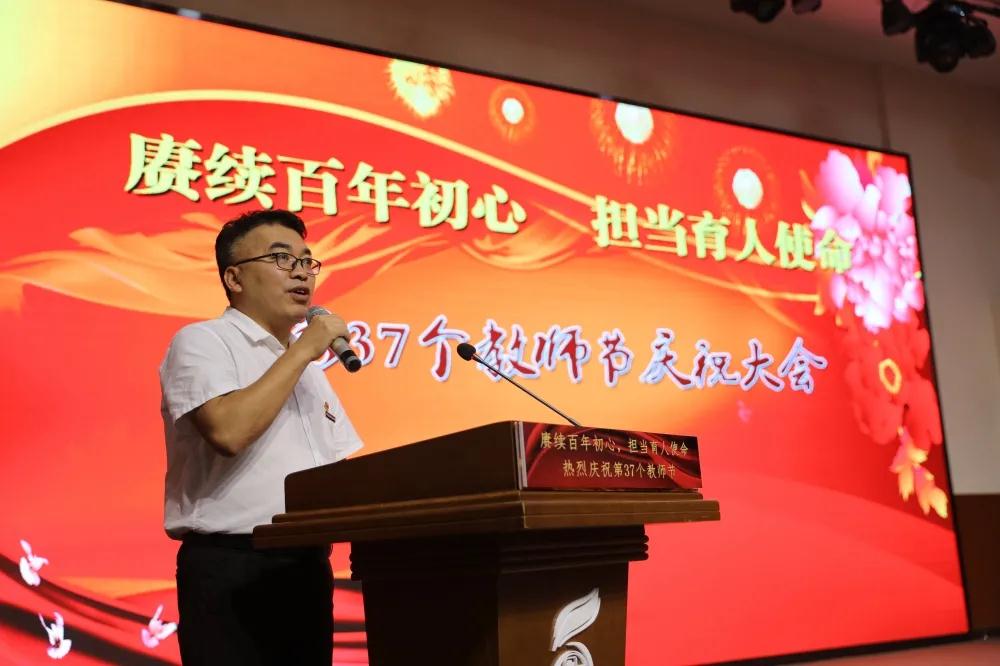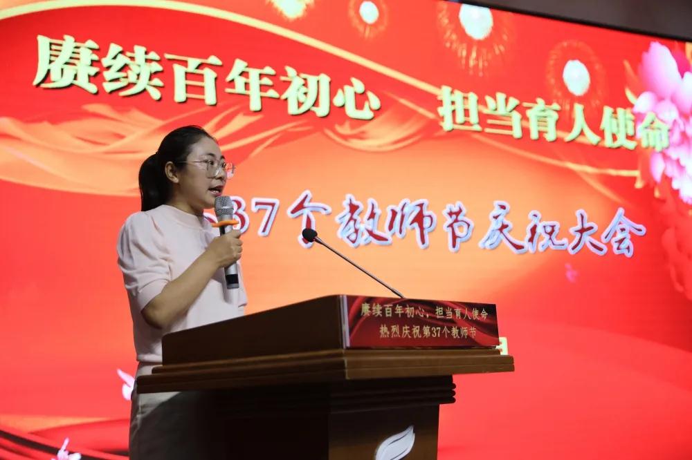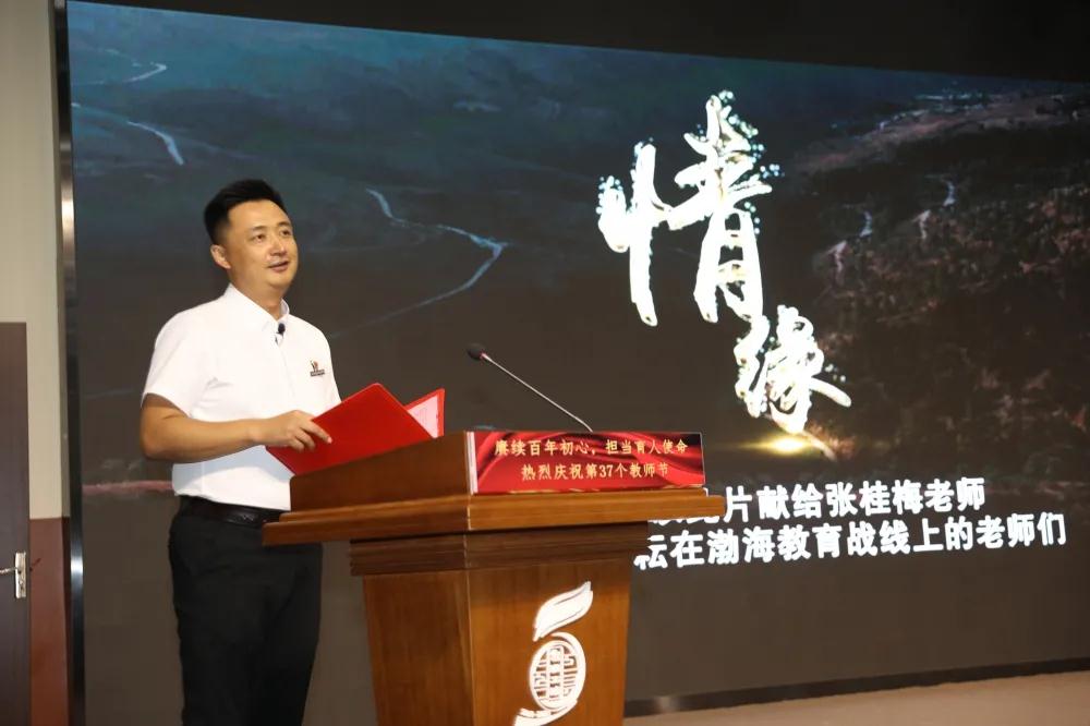 庆祝大会上,学院党委书记王义龙做了讲话。他指出,学院的每一个进步、每一个成绩,都凝结着学院教师和教育工作者的辛勤汗水。他对全体教职员工提出四点希望:一要立德,教师是人类灵魂的工程师,师德是教师最重要的素质,大家要以优秀教师为楷模,坚持立德立己、以身立教,做有理想信念的好老师;二要好学,教师是知识的传播者、智力的开发者,大家要积极在业务上当强将,教学上创一流,做有扎实学识的好老师;三要关爱,要对学生充满爱心,努力成为学生爱戴的老师,群众满意的园丁,社会称颂的楷模,做有仁爱之心的好老师;四要有责,大家要充分意识到自己肩负的重大使命和历史责任,以对学生高度负责的精神,将爱心与责任彰显于教育教学的每个细节,做有道德情操的好老师。他强调,在“十四五”开局之年,在学院“双高计划”建设关键之年,广大教师要牢记为党育人,为国育才使命,继续发扬成绩,以更饱满的精神,务实的工作作风,不断书写渤海教育事业的新篇章!
