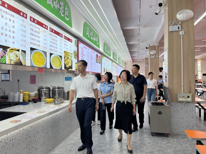 贾春宁一行实地参观学院翻修的膳食中心后,通过查阅文件台账及现场实地检查的方式对学院食品安全工作的落实情况进行督查。