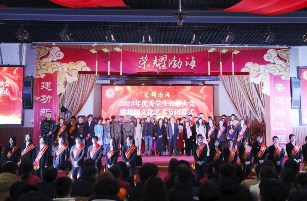 12月22日,学院在学生活动中心召开“荣耀渤海”2023年优秀学生表彰大会暨校园文化艺术节闭幕式。党委书记魏炳举,党委副书记、院长花玉香,党委副书记、工会主席王蕾,纪委书记王雷出席表彰大会,并为受表彰的集体和个人颁奖。学院各相关职能部门负责人,各二级学院全体中层干部,全体辅导员和受表彰学生代表参加大会。