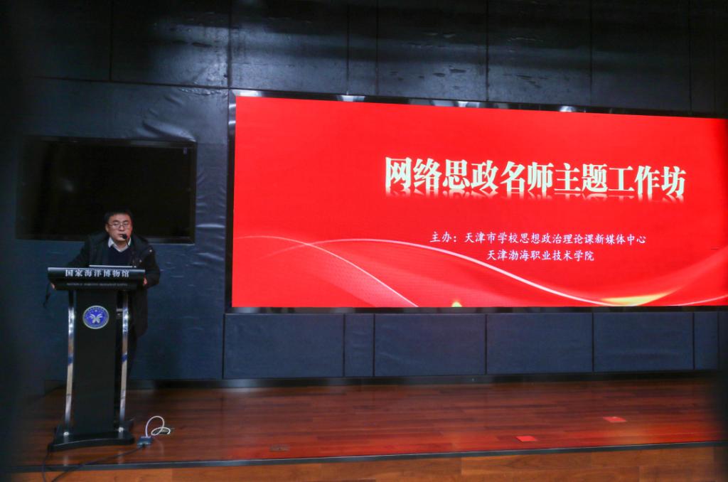 12月27日,由学院与天津市学校思政课新媒体中心联合主办的“网络思政名师主题工作坊”培训活动在国家海洋博物馆圆满召开。市委教育工委市教委学生处田玉波、天津财经大学马克思主义学院院长杨书文、天津工业大学数字传媒实验教学示范中心主任王熙、现代职教网总编刘俊仁出席,学院党委副书记、工会主席王蕾讲话,天津市学校思政课新媒体中心刘思源主持。天津市网络思政名师工作室项目(含培育项目)负责人或团队核心成员、学院网络安全和信息化办公室全体人员,相关媒体负责人等百余人参加。