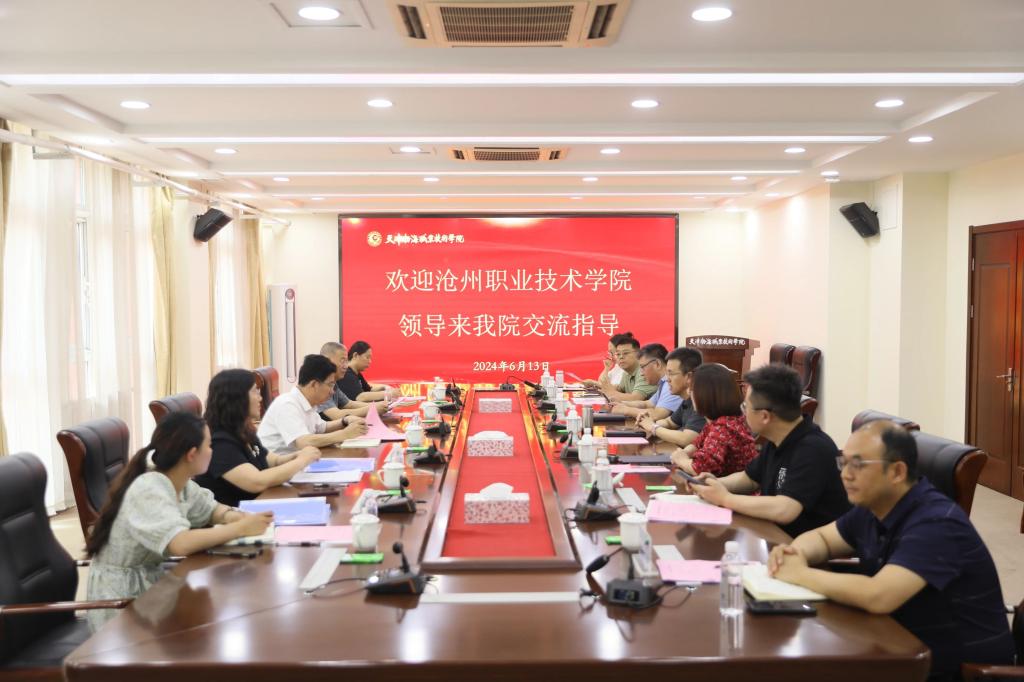 2024年6月13日下午,沧州职业技术学院党委委员、副院长孟洪武等一行5人来学院进行交流调研。学院党委书记魏炳举,党委副书记、院长花玉香,党委委员、副院长吴国旭以及人力资源部、校企办、教务部、科研办、环境与化工学院等相关部门负责人陪同调研。