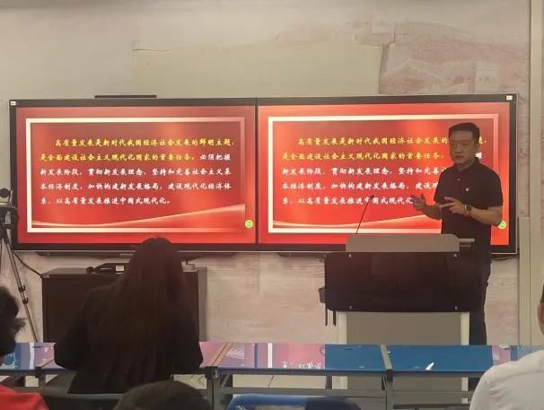 图3:“津石榴”支教团成员王浩宇主讲教学示范观摩课《推动高质量发展》