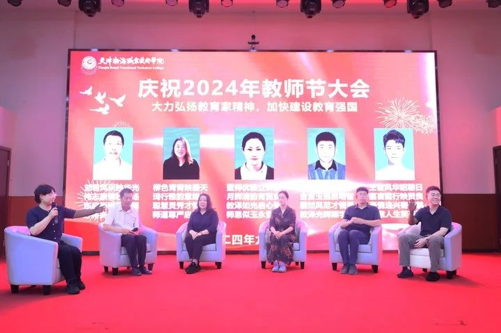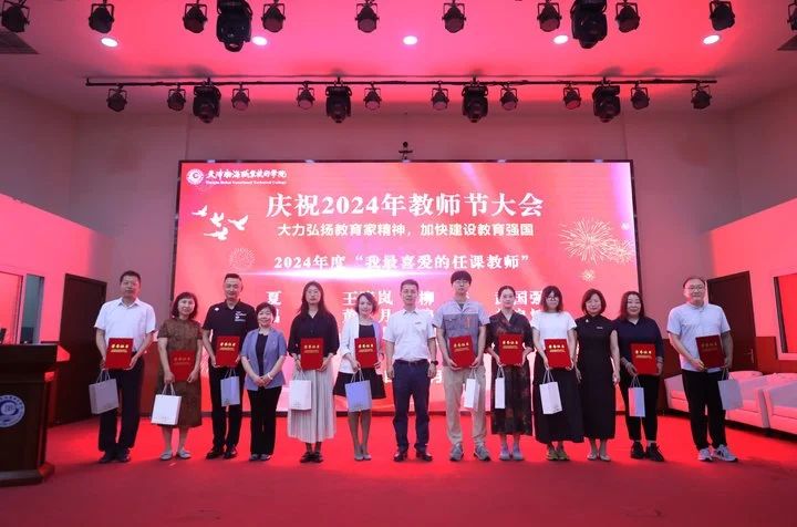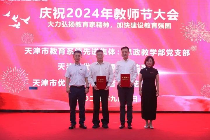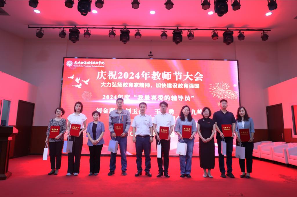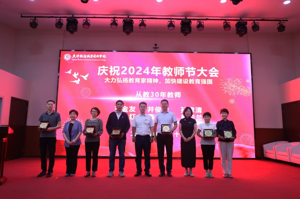 获得天津市教育系统先进集体、天津市优秀教师、天津市优秀教育工作者、从事教育工作满三十年的教职工以及天津渤海职业技术学院“我最喜爱的任课教师”、“我最喜爱的辅导员”的教师代表依次上台接受表彰。
