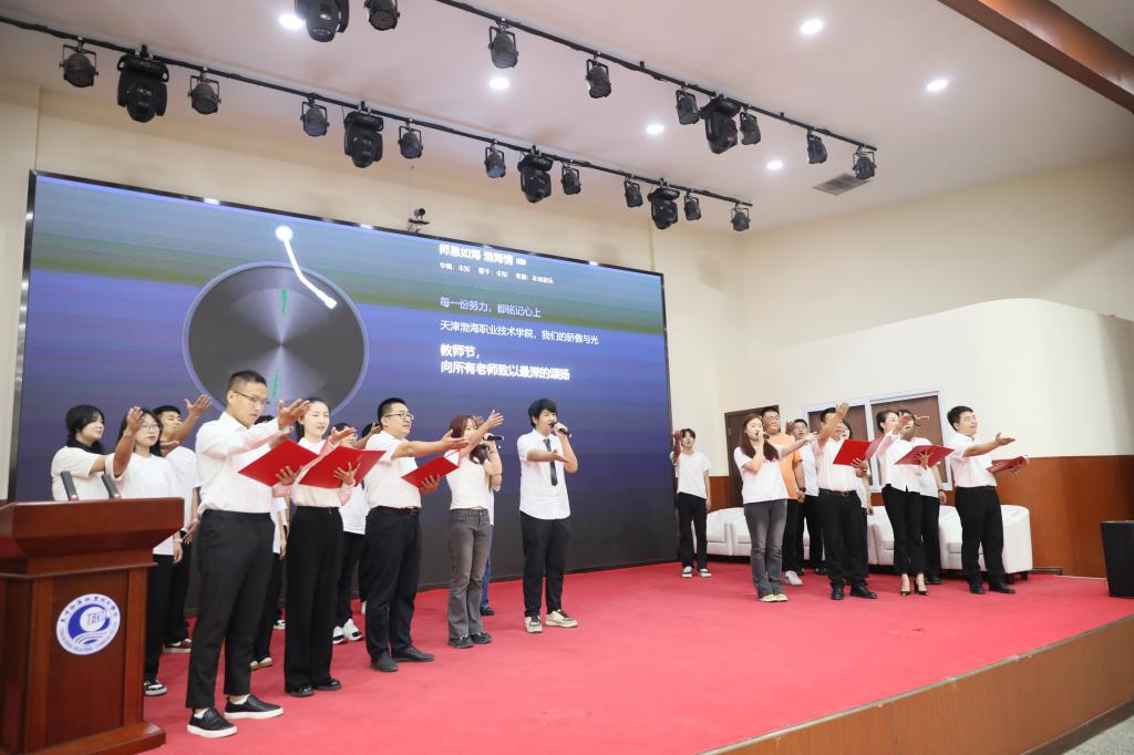 大会上,师生共同演唱了由AI技术原创歌曲《师恩如海 渤海情》,生动展现了师生间的深厚情感和对教师职业的崇高敬意,将活动推向又一个高潮。