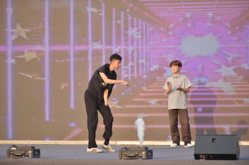 晚会由12个精彩节目组成,涵盖了歌曲、舞蹈、武术、民乐、配音秀等多种形式,展现了学院学子们的多才多艺和青春活力。活动现场气氛热烈,学生们挥舞双手,台上台下互动频繁,为现场师生带来了一场视听盛宴。