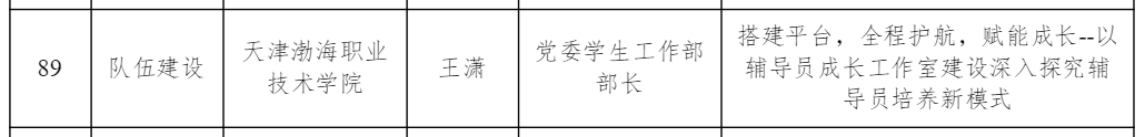 近日,天津市教育两委公布了2025年度天津市高校思想政治工作精品项目立项名单, 学院“e路生花”网络育人品牌的创新与实践获批网络育人项目,搭建平台,全程护航,赋能成长--以辅导员成长工作室建设深入探究辅导员培养新模式获批队伍建设项目。