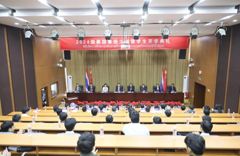10月14日,学院在二楼报告厅隆重举行2024级泰国鲁班工坊留学生开学典礼。学院党委书记魏炳举,泰国大城技术学院院长玛悠丽,泰国红统技术学院院长拍暾等中泰校方领导,教师代表、学生代表,以及29名2024级泰国鲁班工坊留学生,齐聚一堂,共同开启青春新篇章。典礼由学院党委副书记、院长花玉香主持。