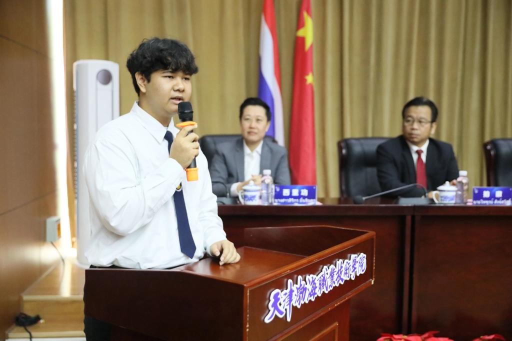 玛悠丽感谢了学院对泰国鲁班工坊留学生的亲切关怀。她寄语同学们要珍惜宝贵的求学机会,积极融入渤海的校园生活,努力学习中文和专业知识,争取早日成为会汉语、通文化、懂技术的复合型人才。
