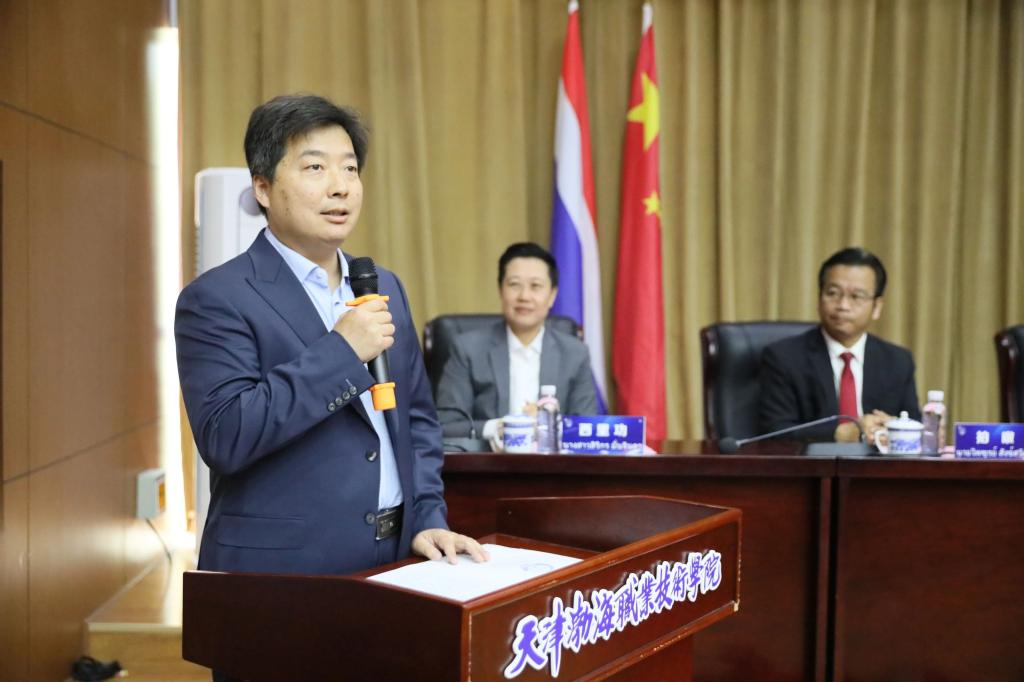 魏炳举代表学院全体师生热烈欢迎各位新同学,并对泰方院校领导、教师的辛勤培养表示衷心感谢。他简要介绍了学院改革发展成就,并对学生提出三点嘱托,一是志存高远,励志笃行,咬定目标加油干;二是躬耕实践,勤学不息, 练就高强技能本领;三是砥砺品德,广交朋友,争做中泰文化交流使者。