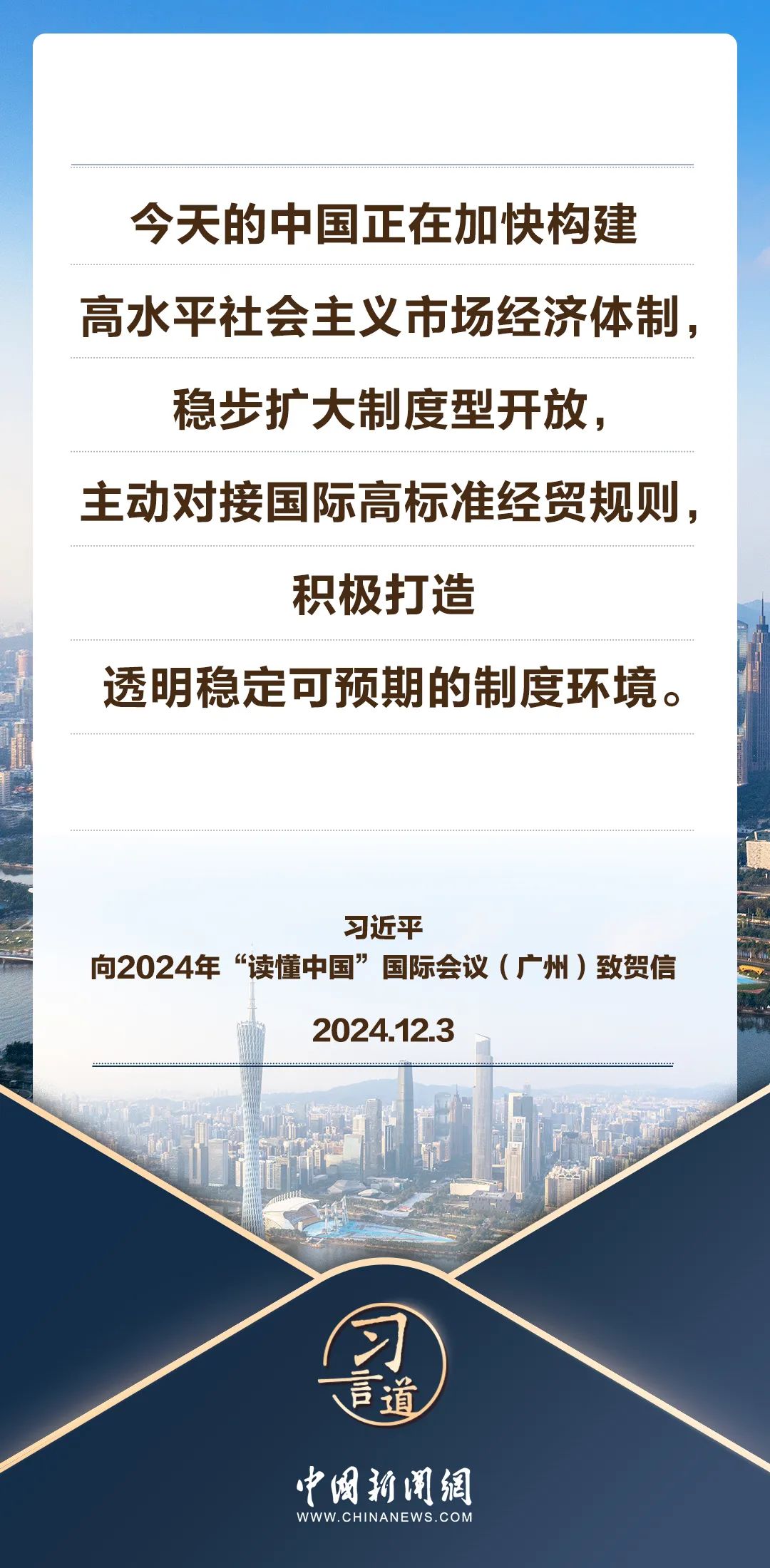 12月3日,国家主席习近平向2024年“读懂中国”国际会议(广州)致贺信。习近平指出——