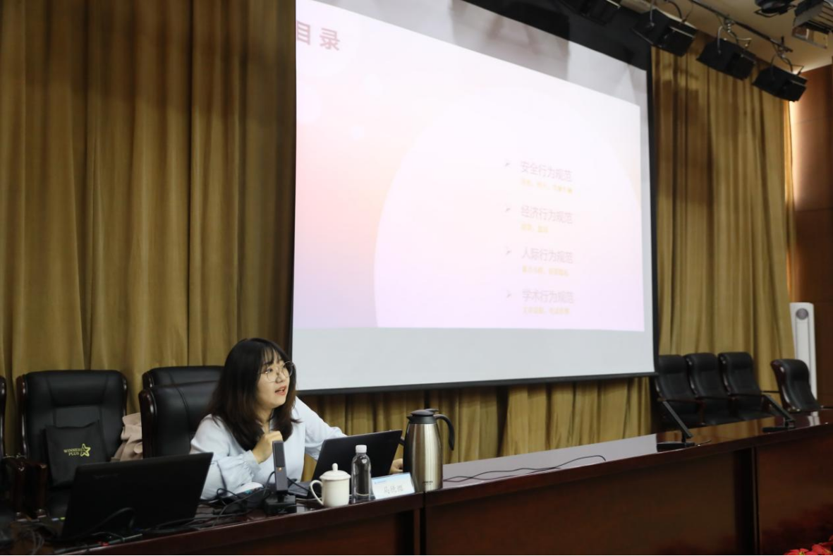 随后,马德缨围绕“知法用法,和谐校园”的主题,通过生动的案例和深入浅出的讲解,向师生们剖析了大学生在安全行为规范、经济行为规范、人际行为规范以及学术行为规范等方面可能遇到的问题及法律后果。从用电安全、用火安全到驾驶安全,从借贷陷阱、信用卡出借风险到暴力斗殴、侵犯隐私的法律责任,马德缨一一进行了详细阐述,并引用相关法律法规,帮助大家明确法律底线,强化法治观念。