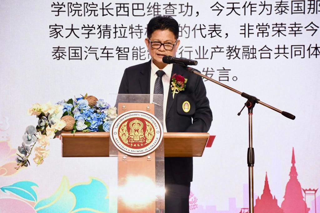 西巴维查功院长作为泰国那空沙旺皇家大学校长猜拉特先生的代表在致辞中表示,值此我校建校103周年之际,我们将以共同体为平台,精准对接智能制造与汽车产业需求,深化产教融合实践,携手培育符合未来劳动力市场的高素质技术人才,助力中泰职教合作迈向新高度!