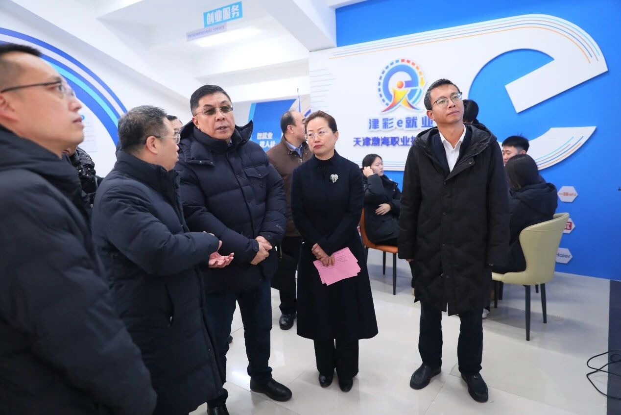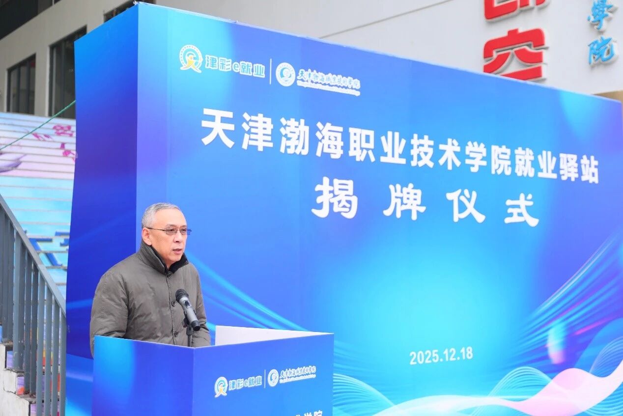 为学习贯彻党的二十届四中全会精神,落实国家及天津市关于就业工作的部署要求,培育“津彩e就业”服务品牌,搭建学生就业服务平台,促进高质量充分就业,展示学校就业工作成果,学院于12月18日举办就业驿站启动仪式。天津市人社局党组成员、副局长杜全胜,北辰区副区长、区政府党组成员杨占雷,中国北方人才市场总裁田海嵩,天津渤海化工集团有限责任公司党委副书记王星炜,天津市人社局就业促进处处长于洋,中国天津人力资源开发服务中心副主任周淳,天津市教育委员会学生处副处长石兵,北辰区人社局局长魏卉,天津渤海化工集团有限责任公司人力资源部部长刘洋,学院党委书记魏炳举,学院党委副书记、院长花玉香出席了此次活动,天津市人社局就业促进处、中国北方人才市场中天人力中心、北辰区人社局、以及学院就业办公室、各二级学院相关负责人参加了此次活动。