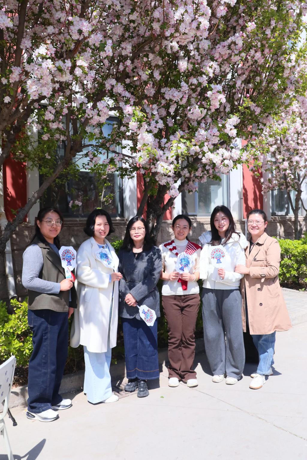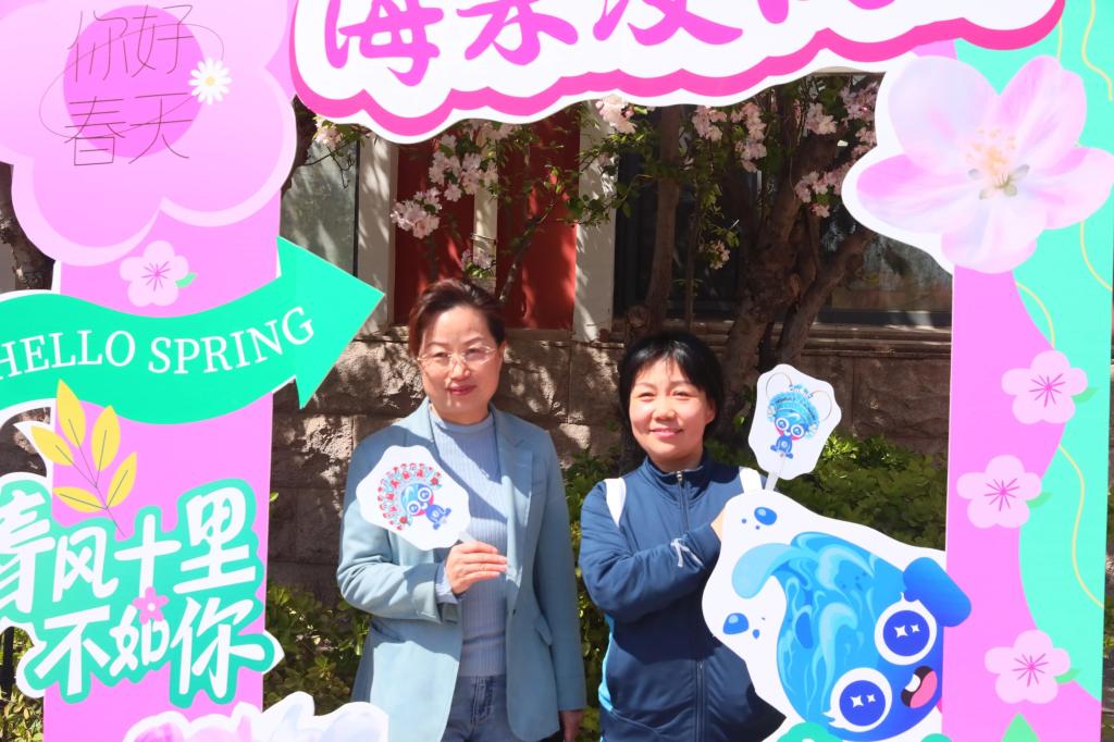 党委副书记、院长花玉香,党委副书记、工会主席、副院长王蕾也来到活动现场,与大家共赏海棠花下的诗意氛围。