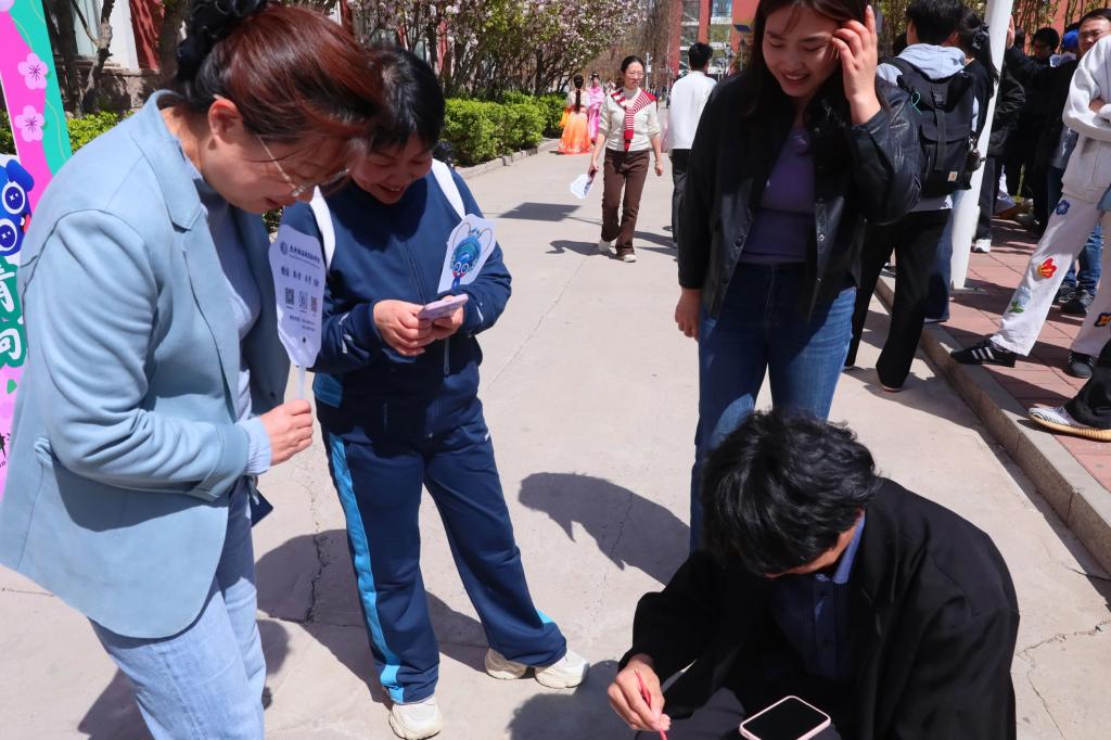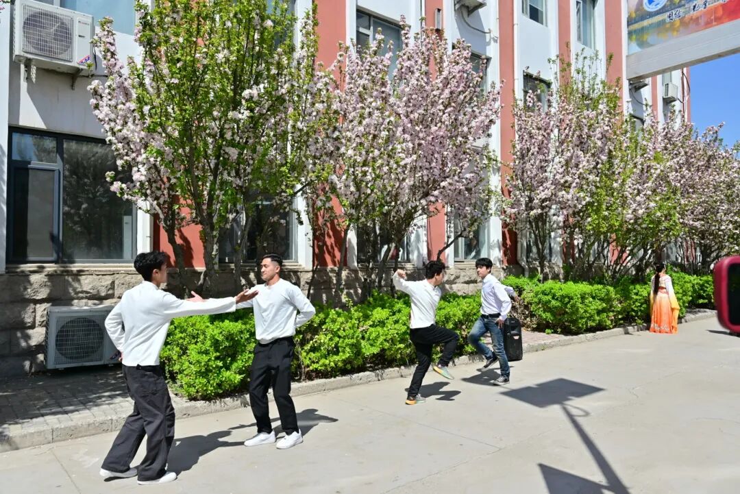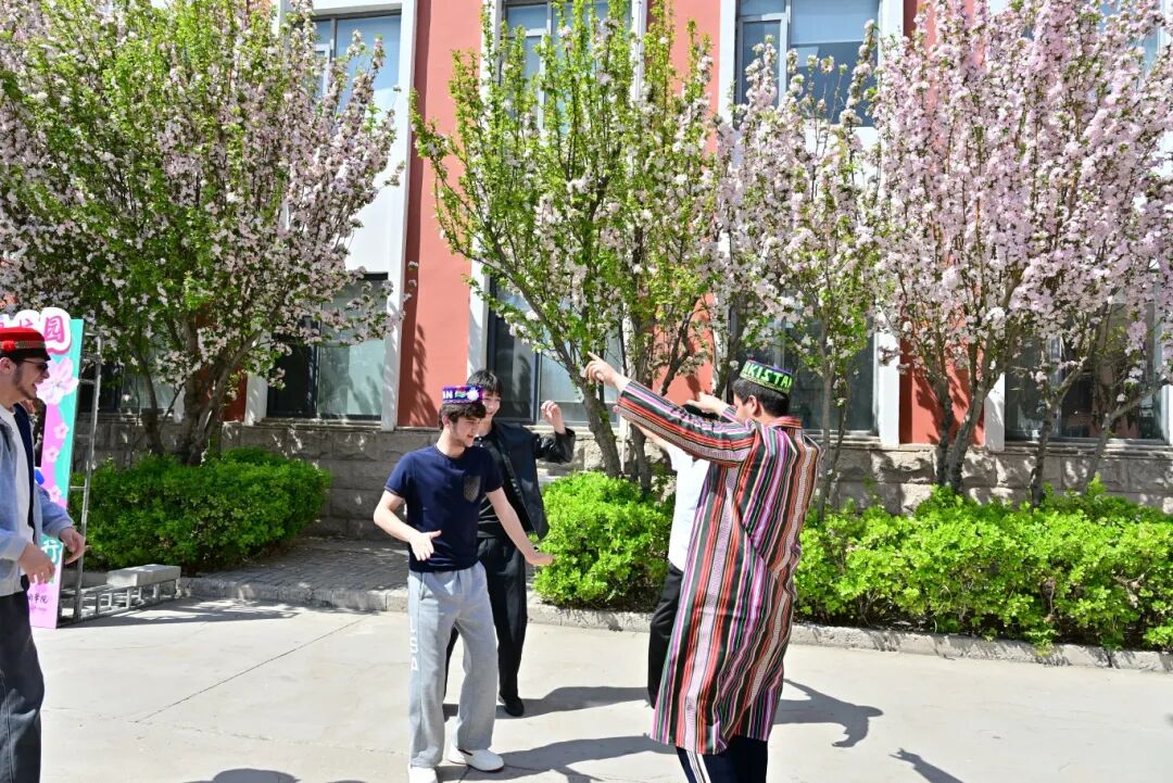 4月7日中午,学院以“海棠漫校园,青春向绿行”为主题的海棠文化节活动在教学楼前海棠道温情开展。师生们齐聚海棠树下欣赏诗歌朗诵、舞蹈、戏曲表演、彩绘海棠等丰富多彩的文娱活动,来自塔吉克斯坦的留学生也加入其中,载歌载舞、欢乐互动,共同抒发对校花、校树的喜爱之情。