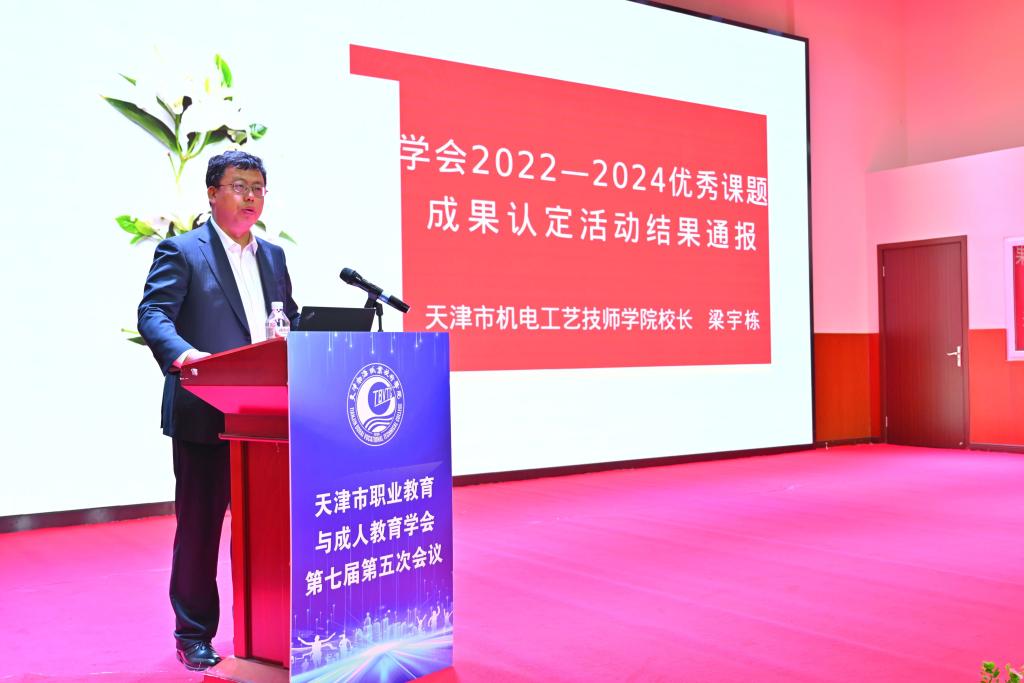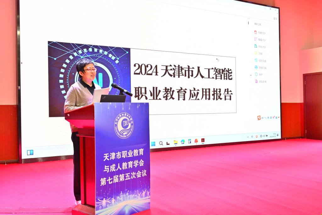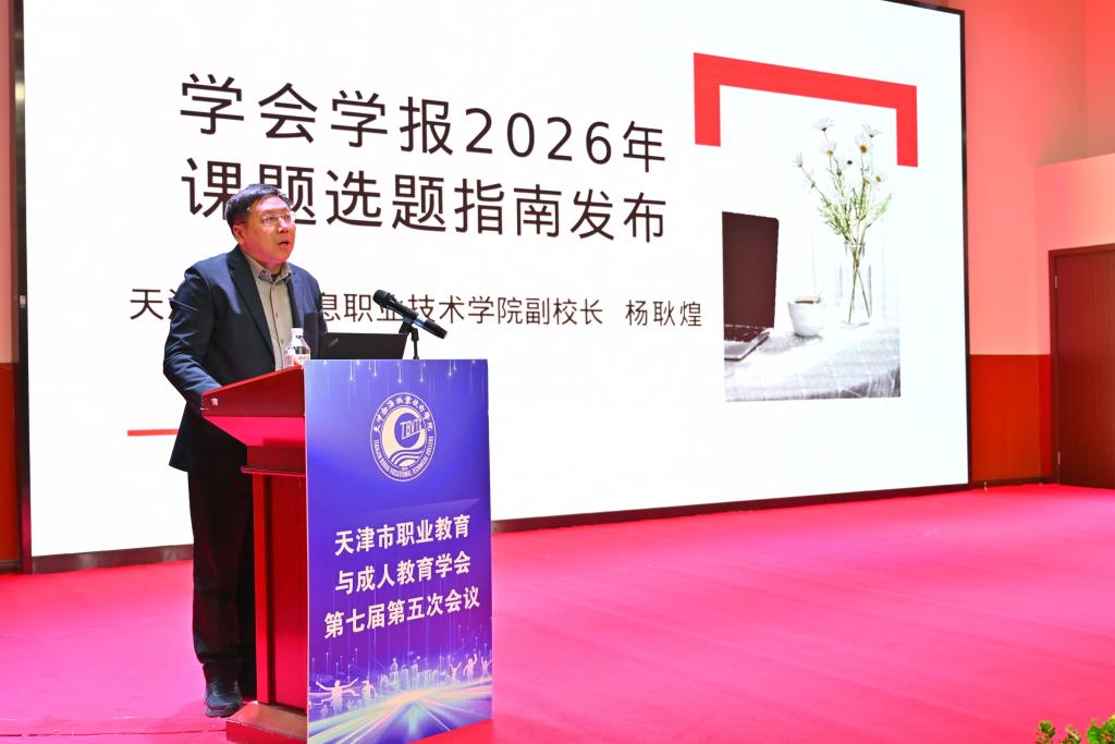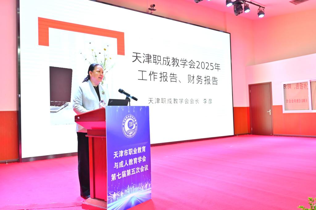 天津职成教学会秘书长张强宣读了《2024 天津市人工智能职业教育应用报告》撰写说明。学会会长李彦宣读了天津职成教学会2025年工作报告、财务报告,并对拟增补学会副会长、理事情况进行了说明。李彦会长全面回顾总结了过去一年学会在学术交流、课题研究、行业服务、自身建设等方面的工作成效,客观梳理工作中存在的不足,并详细汇报年度财务收支情况,明确了下一年度学会的工作思路与重点任务,得到了全体参会人员的一致认可。随后,天津电子信息职业技术学院副校长杨耿煌发布了学会学报2026年科研课题指南,天津市机电工艺技师学院校长梁宇栋通报了学会2022—2024年度优秀课题成果认定活动结果。