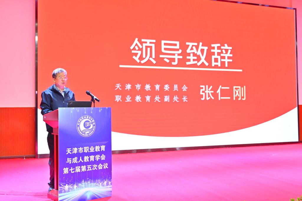 本次会议由天津海运职业学院副校长、天津职成教学会副会长王明春主持。年会开幕式上,市教委职教处副处长张仁刚为本次会议致辞。张仁刚处长在讲话中充分肯定了学会在推动职业教育、继续教育改革创新、交流协作方面发挥的重要作用,结合当前教育强国建设的时代要求,分析了职业教育与继续教育面临的新机遇、新挑战,对学会后续工作开展、各院校职教育人提质增效提出殷切期望,强调要坚守育人初心,深化教育教学改革,加快构建现代化职业教育与继续教育体系,为地方经济社会发展培育更多高素质技能人才。