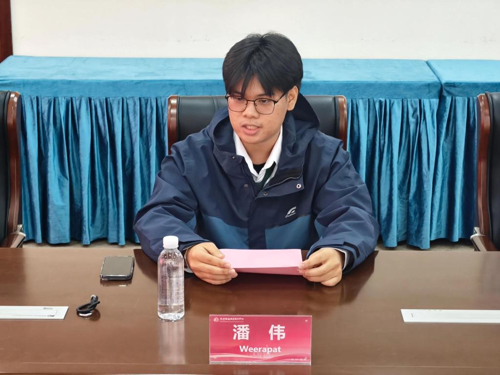 中泰师生代表作交流发言。教师代表、交通与建造学院院长徐霁堂表示,将依托学院优质教学资源,通过课堂学习、企业实地参观等多元形式开展教学,确保同学们学有所获、学有所成。泰国学生代表潘伟对学院提供的宝贵学习机会与热情接待表示感谢,表示将全力投入学习,努力掌握知识技能,积极了解中国文化、结交中国朋友,以实际行动争做中泰文化交流使者。