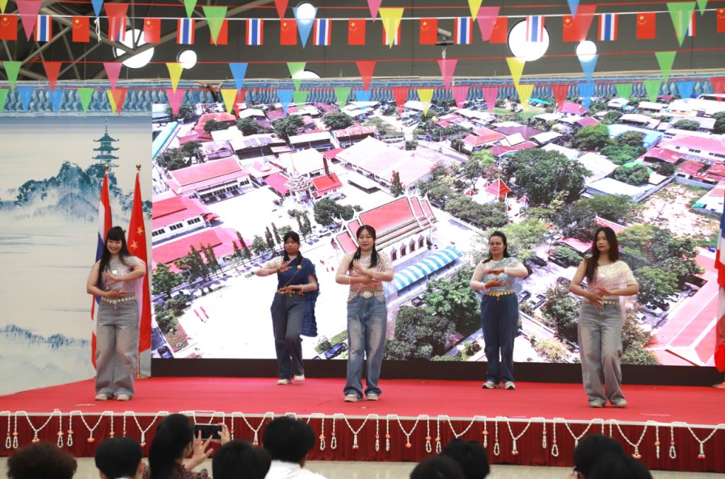 文艺表演环节,中泰学子联袂献艺、精彩纷呈。歌曲《我会等》温柔治愈,传递青春温暖;合唱《天地龙鳞》气势恢宏,展现中华文化深厚底蕴。随后,全体师生携手共跳泰国传统舞蹈,欢快旋律、热情舞步将现场氛围推向高潮,欢声笑语洋溢校园每个角落。