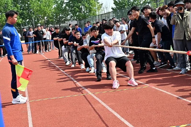 作为体育节首场赛事,由智能制造学院承办的“聚力同行 绳耀青春”趣味拔河比赛点燃全场激情。各二级学院共派出5支代表队,选手们精神抖擞、紧握长绳,齐心协力、顽强拼搏,现场呐喊声、助威声此起彼伏,热闹非凡。参赛师生以绳聚力、以赛凝心,充分展现了团结协作、永不言弃的体育精神。经过激烈角逐,比赛结果揭晓:智能制造学院获得一等奖,人工智能学院获得二等奖,财经商贸学院获得三等奖,化工与环境学院、交通与建造学院获得优胜奖。