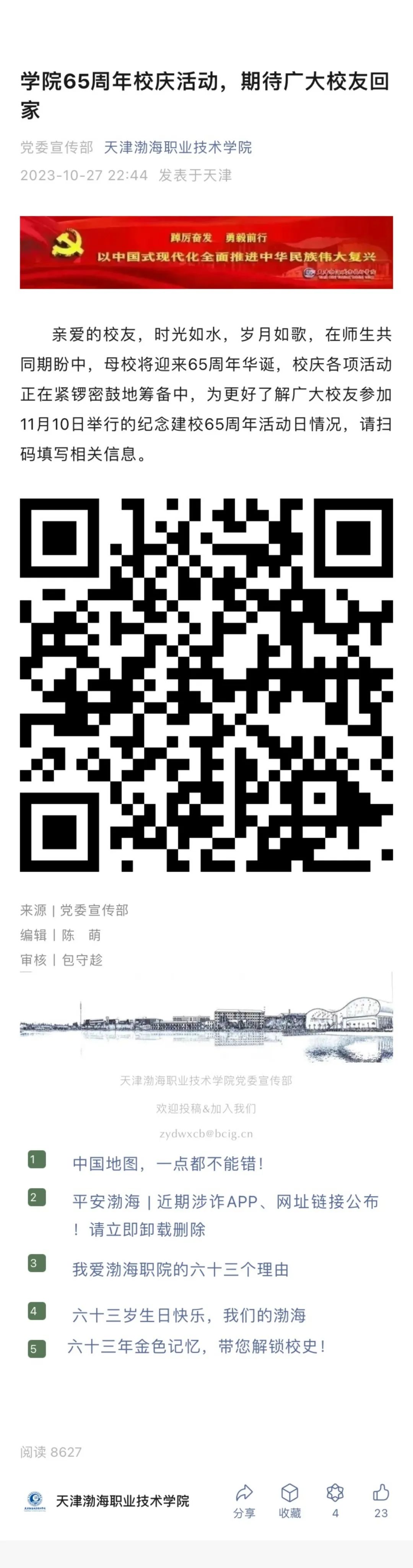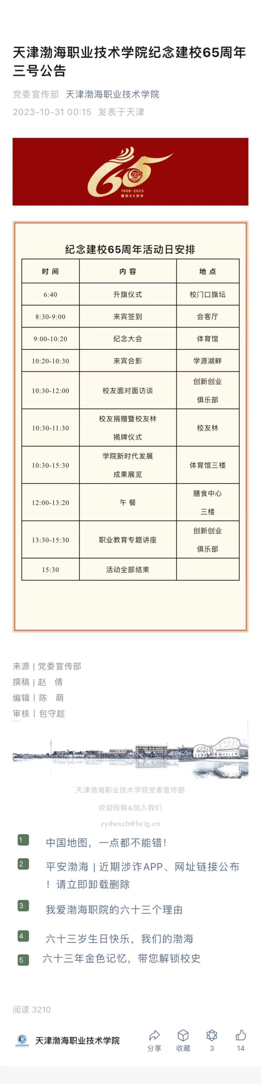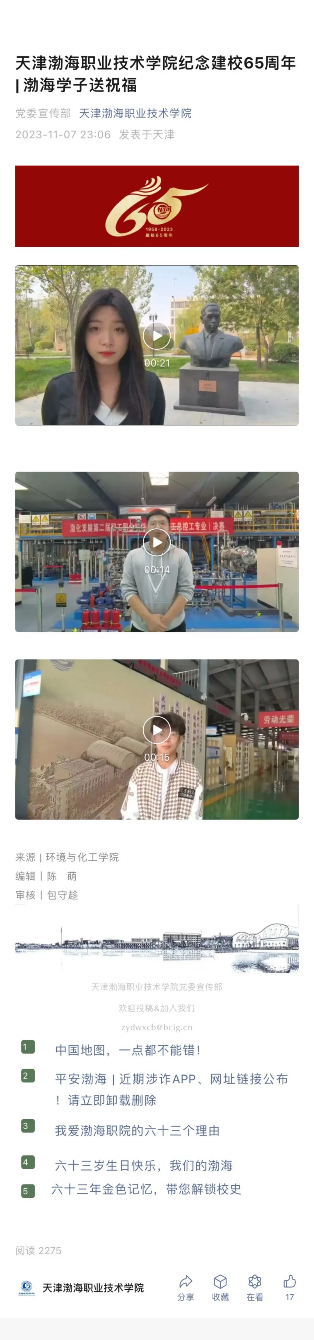 天津渤海职业技术学院纪念建校65周年 | 渤海学子送祝福