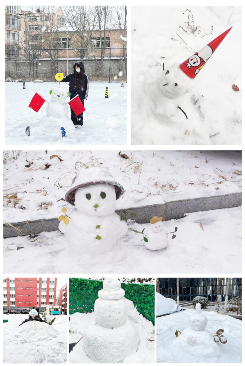 渤海学子不仅有责任承担意识,还具有热爱生活的激情。他们在校园各个角落堆雪人、打雪仗,欢笑声演奏出一曲冬日交响乐。许多渤海学子将这些富于创意的雪人拍照留念,定格此刻的轻松愉悦和美好的雪中记忆。