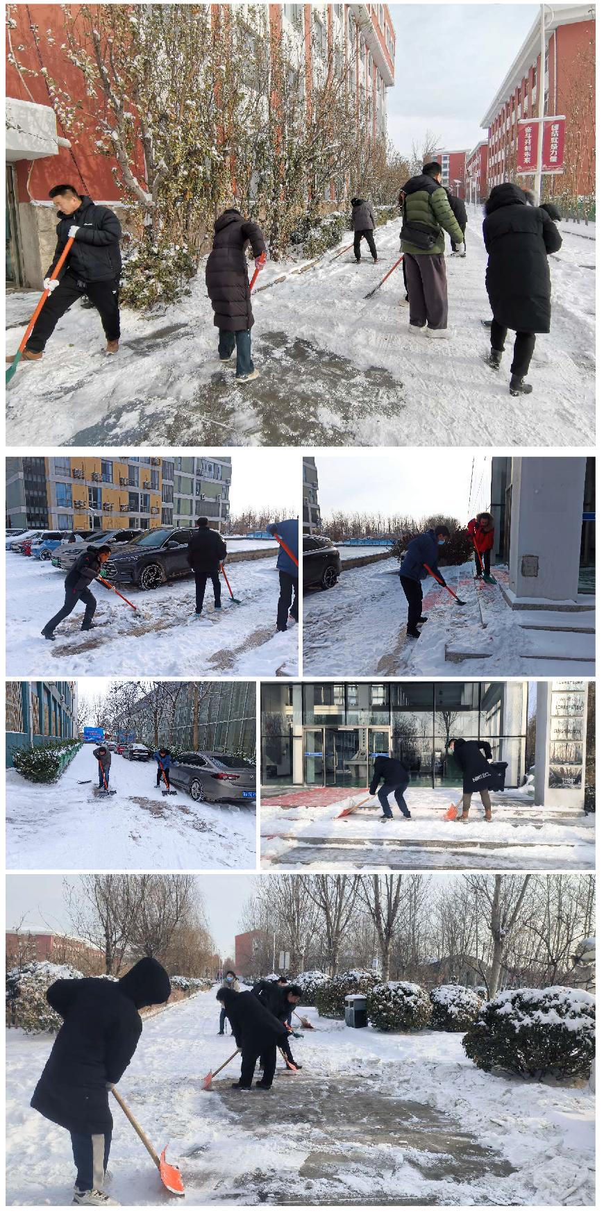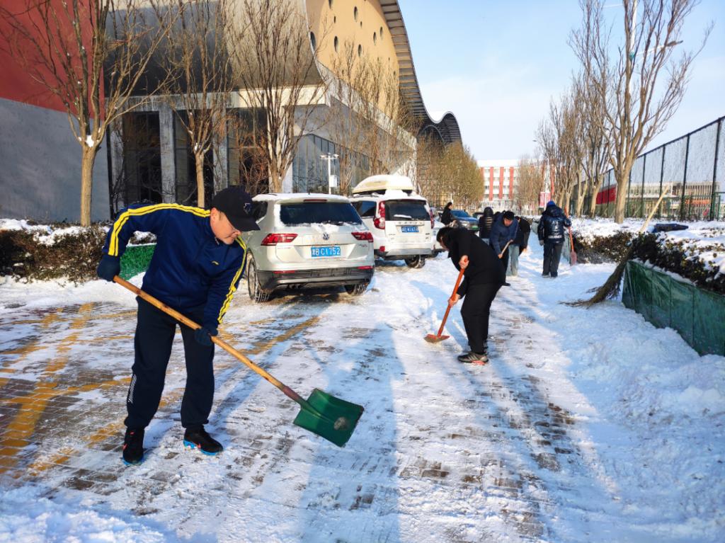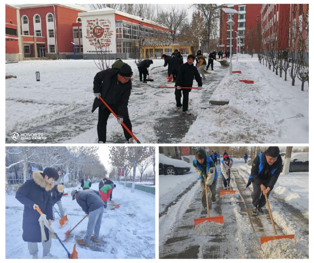 12月15日,天津市突降暴雪,银装素裹的美景给师生们带来欣喜的同时,也造成了校园内道路积雪和结冰的情况。为保障广大师生和校内过往车辆的安全,广大师生迅速行动,积极投入到校园扫雪除冰工作中。利用一个上午的时间,对教学楼、办公楼、实训基地周边主要道路的冰雪进行了清理,展现了师生们的责任与担当。