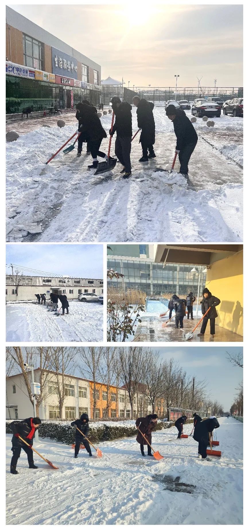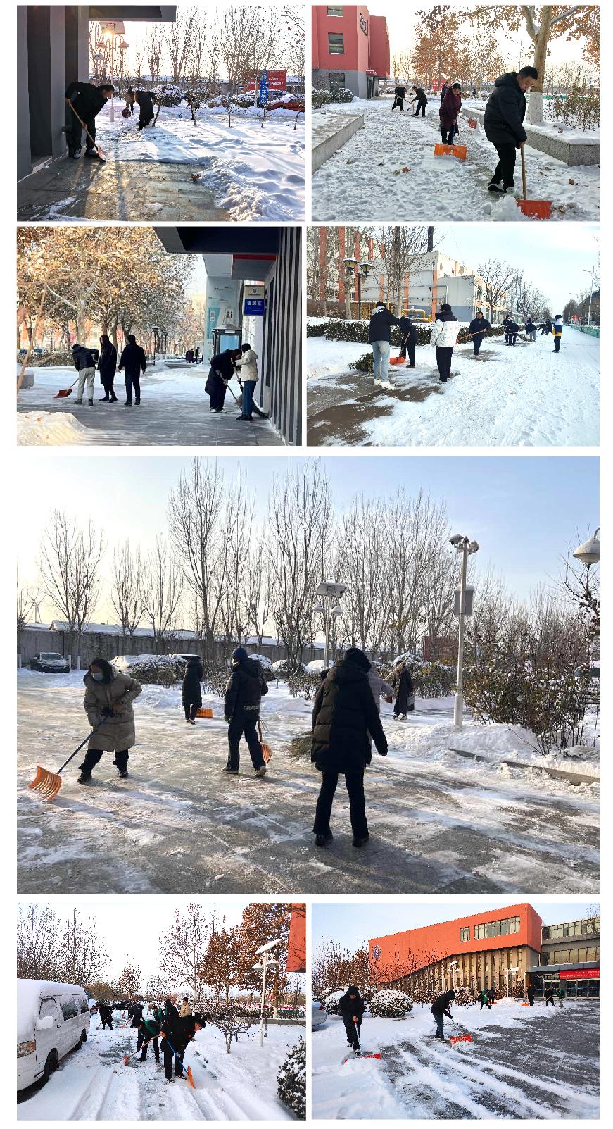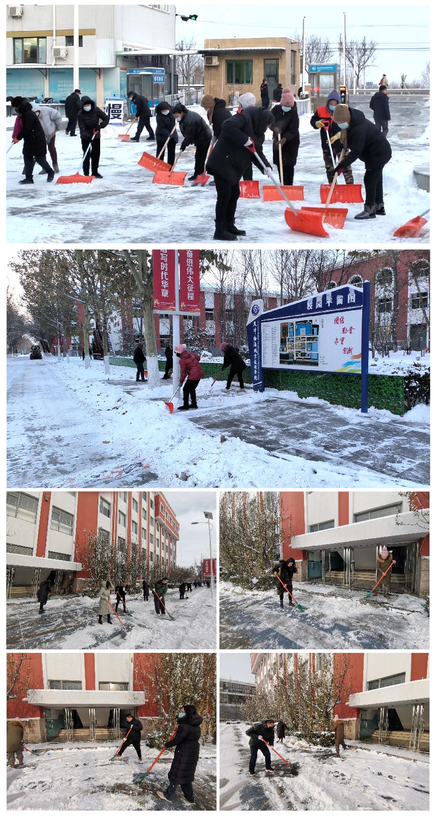 12月15日,天津市突降暴雪,银装素裹的美景给师生们带来欣喜的同时,也造成了校园内道路积雪和结冰的情况。为保障广大师生和校内过往车辆的安全,广大师生迅速行动,积极投入到校园扫雪除冰工作中。利用一个上午的时间,对教学楼、办公楼、实训基地周边主要道路的冰雪进行了清理,展现了师生们的责任与担当。