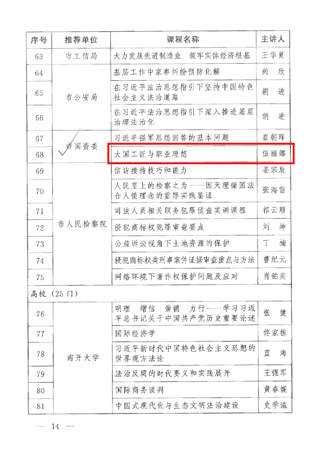 近期,市委组织部公布了干部教育培训“三百”工程(百名优秀教师、百门精品课程、百个典型案例)入选目录,学院报送的“大国工匠与职业理想”课程成功入选干部教育培训精品课程目录。