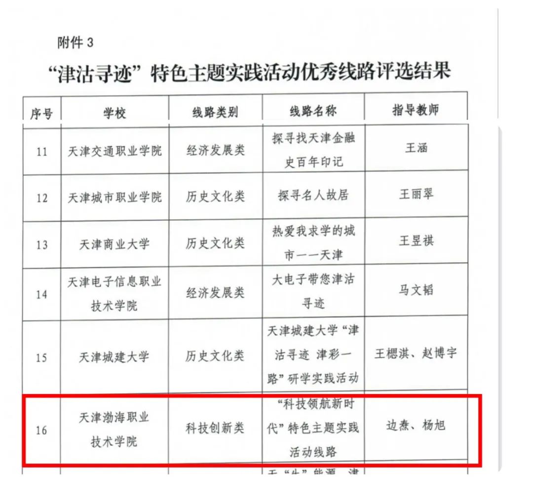 为深入贯彻落实党的二十大精神,全面推进“大思政课”建设,深入挖掘天津的城市文化与历史底蕴,引领学生了解天津、热爱天津、建设天津,引导更多有志青年扎根津沽大地。2023年5月,党委学生工作部组织各二级学院面向师生征集“津沽寻迹”特色主题社会实践线路,并组织开展社会实践活动。经评审,党委学生工作部边焘、工商管理学院杨旭所负责“科技领航新时代”特色主题实践活动线路获评2023年“津沽寻迹”特色主题实践活动优秀线路。