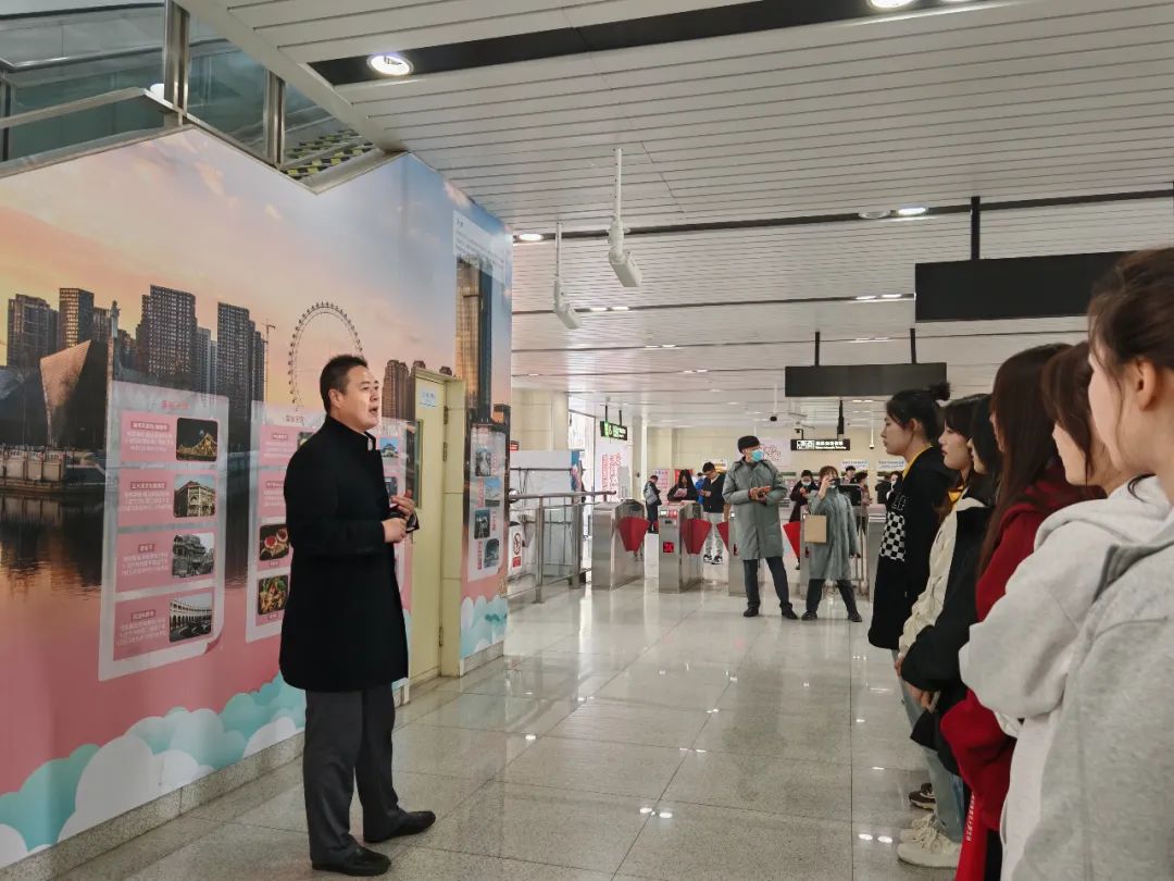 本次活动走出校园,走进天津三号线轨道交通运营有限公司南站站区,邀请站区中心站长刘顿、值班站长赵志豪及工作人员为师生作了详细的讲解,同时在值班员的带领下参观了车控室,并演示了灭火器等消防设备的使用。活动中,师生代表与站区工作人员进行互动,现场气氛活跃,同学们纷纷在南站打卡拍照,表达对祖国、对天津的热爱,站区工作人员也表达了对各民族同学的欢迎,以及对天津渤海职业技术学院的祝福!