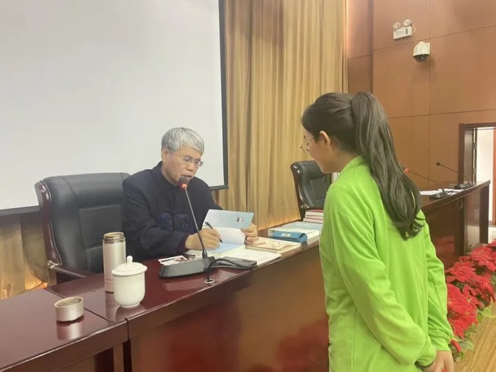 在最后的签名赠书环节,赵建忠一一为在场的师生们签名,并鼓励他们继续深入研读红楼梦,挖掘其中的文化内涵。