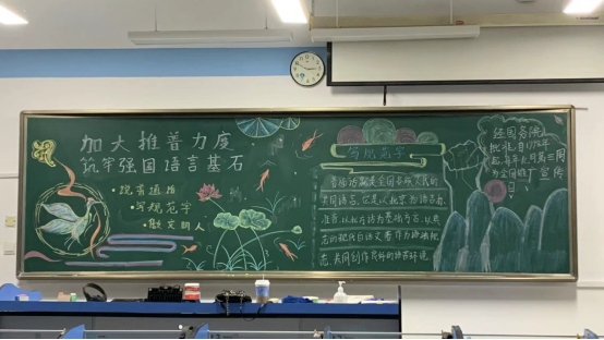 一次主题黑板报,绘写语言之梦。黑板报设计大赛不仅展示了学生们的艺术才华,美化了校园环境,也成为传播普通话的重要窗口。
