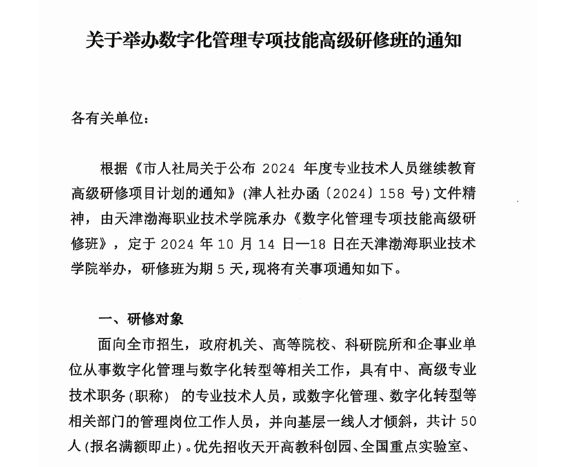 关于举办数字化管理专项技能高级研修班的通知