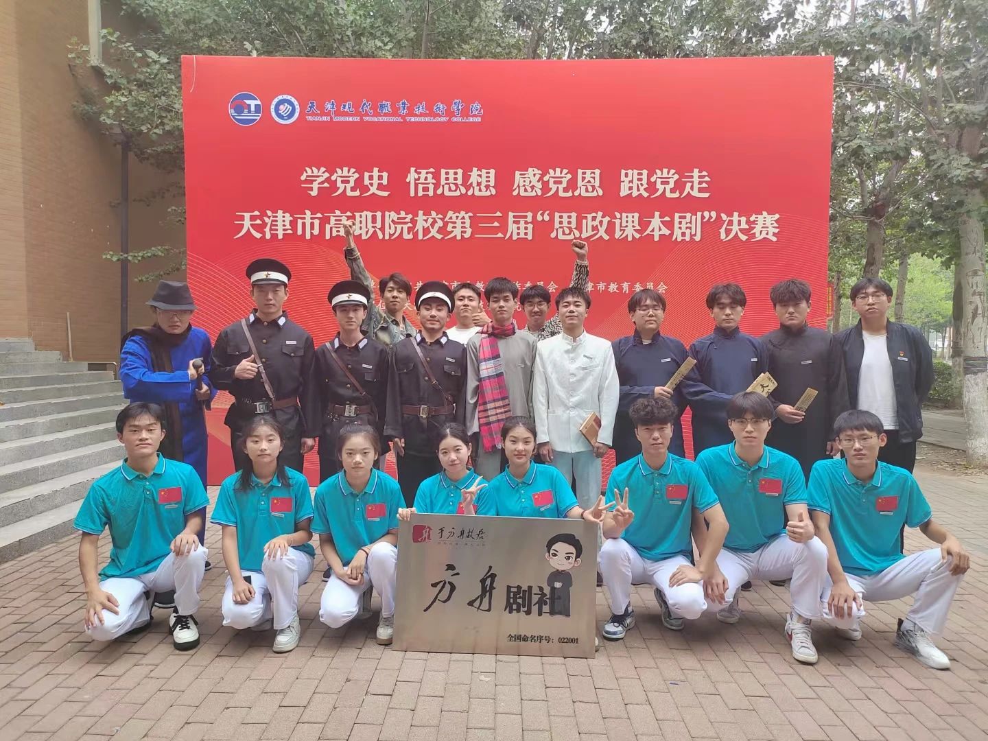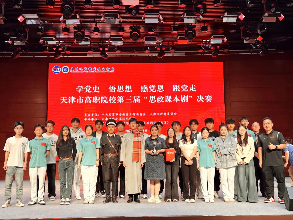 为深入学习习近平新时代中国特色社会主义思想,贯彻党的二十届三中全会精神和全国教育大会精神,落实习近平总书记视察天津重要讲话精神,近日,由市委教育工委、市教委主办的《学党史 悟思想 感党恩 跟党走 天津市高职院校第三届“思政课本剧”决赛》在海河教育园顺利举行。经过激烈角逐,学院“方舟剧社”思政课本剧《初心》以优异的表现荣获二等奖。