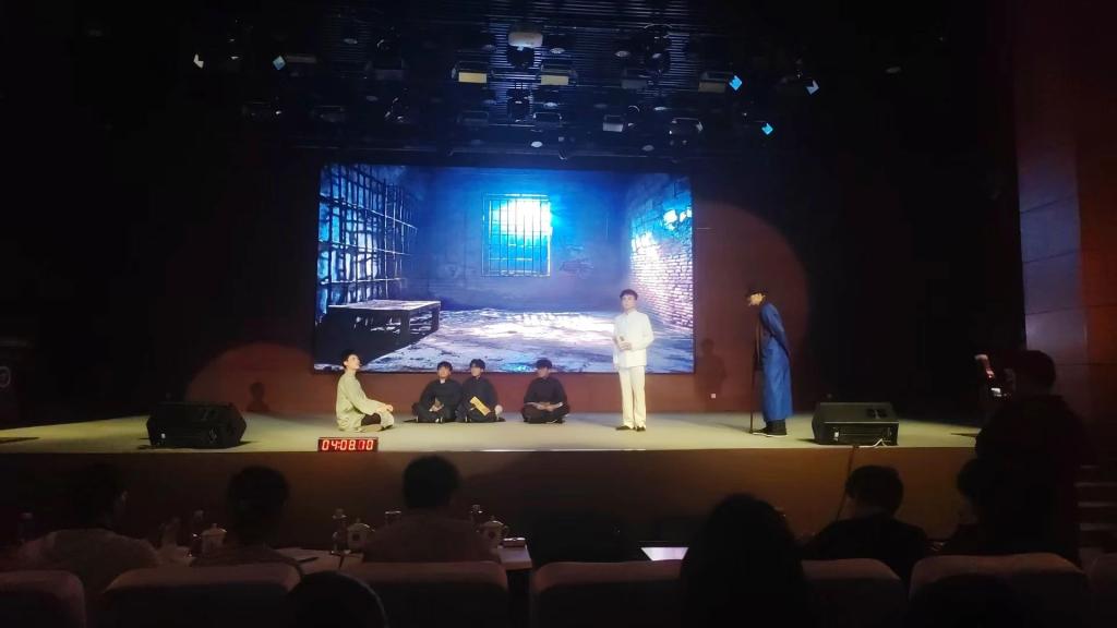 比赛中,思政课本剧《初心》在指导教师张翠宣的精彩开场白后拉开帷幕,舞台上,演员们全情投入,通过生动的语言和肢体动作,将于方舟烈士“爱国不怕进狱门”的英勇事迹和对马克思主义的坚定信仰展现得淋漓尽致,特别是于方舟的扮演者——机电工程学机电235班高艺伟,以及饰演同他对峙的天津警察厅厅长杨以德的扮演者——环境与化学工程学院环工231班张宇鑫,他们精湛的演技、清晰又满腹情感的台词功底,赢得了在场每一位师生的热烈掌声,将全剧推向高潮。最终,该剧以其深刻的选题、精湛的演技赢得了评委和观众们的一致好评。