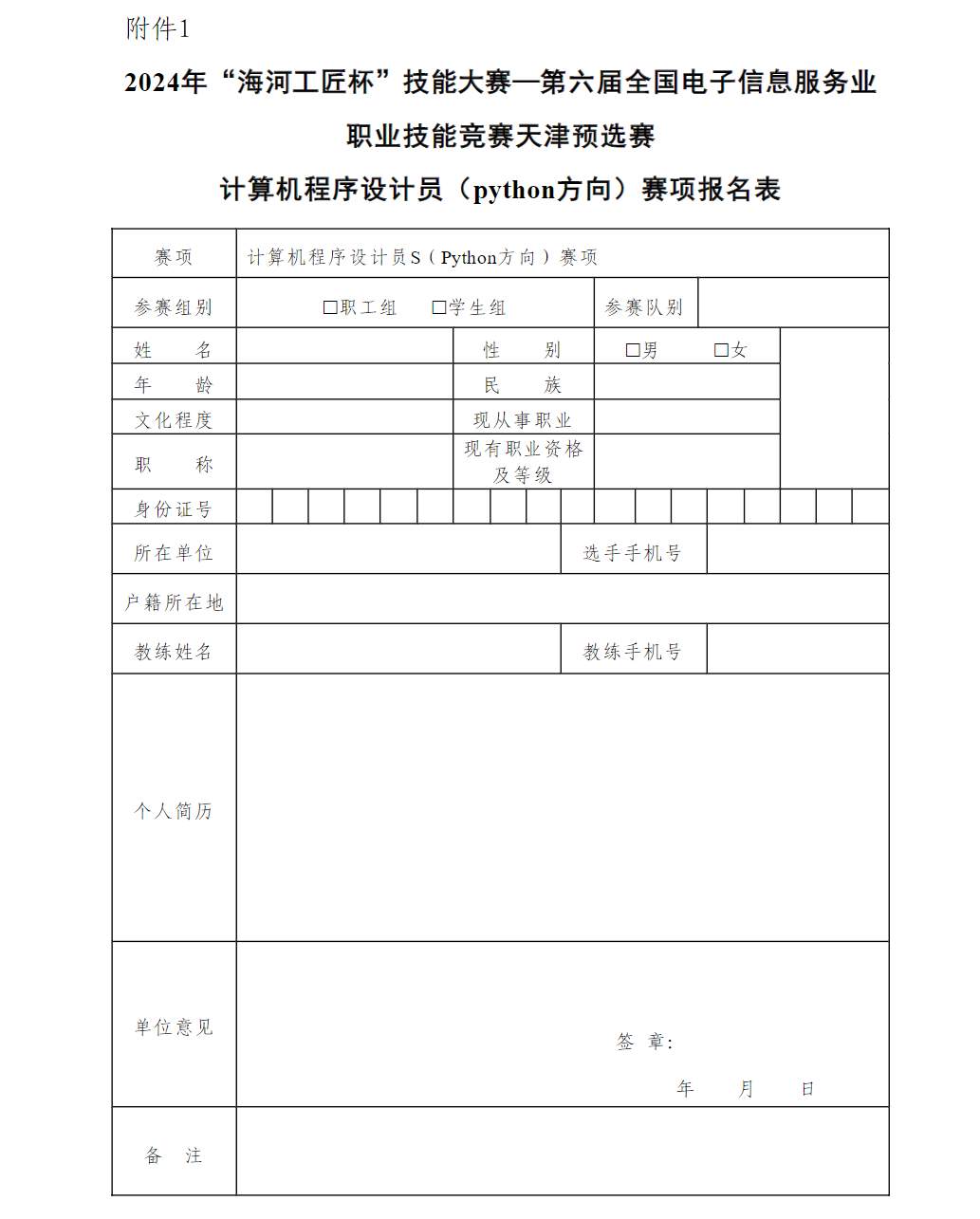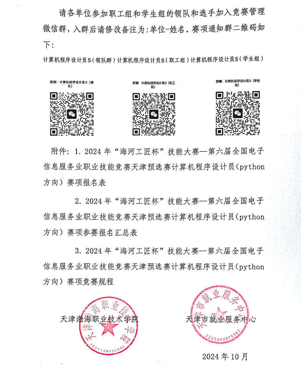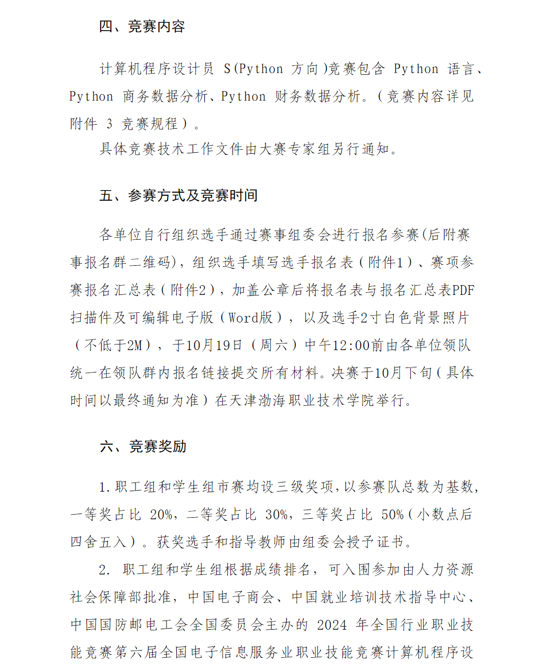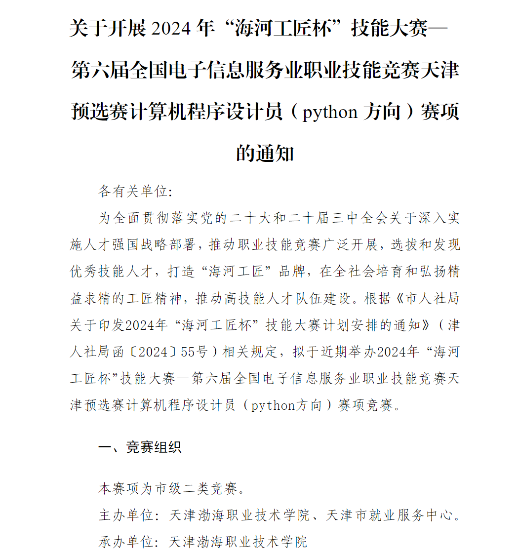 关于开展2024年"海河工匠杯"技能大赛﹣计算机程序设计员(python方向)赛项天津预选赛的通知