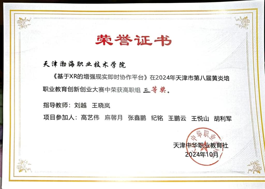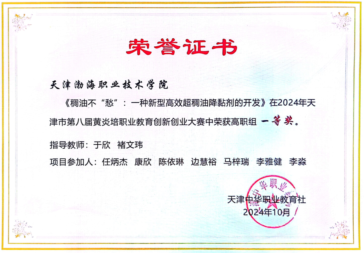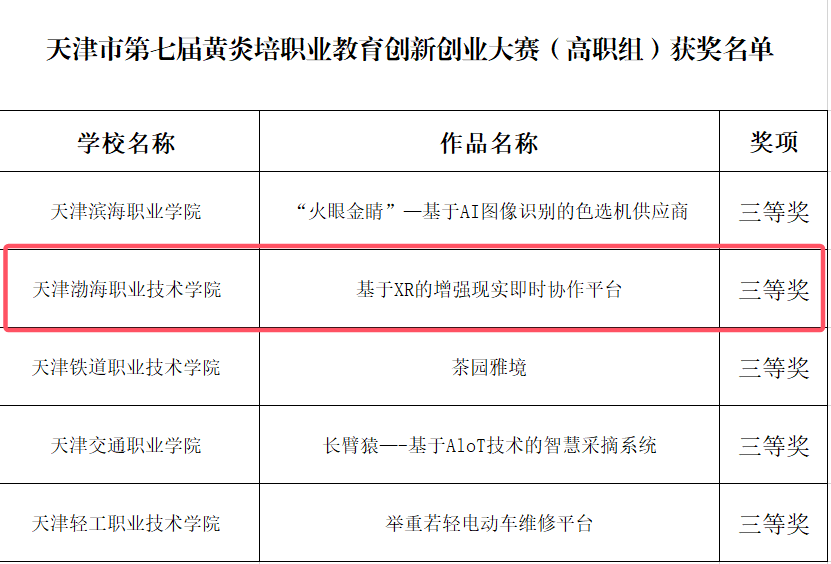 10月15日,天津市第八届黄炎培职业教育创新创业大赛决赛落下帷幕,学院环境与化工学院的参赛项目“稠油不‘愁’:一种新型高效超稠油降黏剂的开发”在众多项目中脱颖而出,荣获高职组一等奖,并顺利入围国赛;机电工程学院的参赛项目“基于XR的增强现实即时协作平台”同样表现出色,荣获高职组三等奖。
