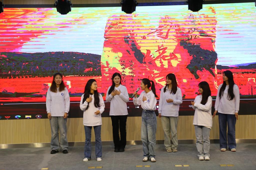 研学的时光是短暂而又难忘的,在汇报演出中,学院学生与京津冀三地的高校学子共同担任主持人,展现了渤海学子良好的精神风貌。师生表演了歌曲《南泥湾》,“花篮的花儿香,听我们唱一唱”,带领大家在歌声中感受轰轰烈烈的南泥湾大生产故事。