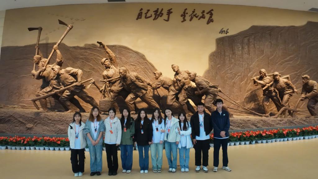 从荒无人烟的“烂泥湾”到水稻田高低错落、玉米地一望无垠的陕北“好江南”,南泥湾这个响亮的名字,承载的是中华民族自己动手、丰衣足食的创业精神。来到南泥湾,巨大的党徽在阳光的照耀下熠熠生辉,仿佛在诉说着那段艰苦卓绝又充满希望的垦荒岁月。随后,在讲解员的带领下,师生来到了南泥湾大生产纪念馆,真切感受革命先辈自力更生、艰苦奋斗的伟大精神。