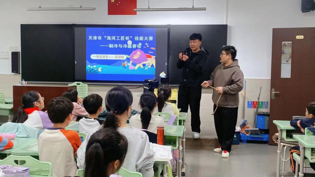 为全面落实立德树人根本任务,深入贯彻落实习近平总书记关于教育的重要论述,响应市教委关于深化新时代天津市大中小学实践育人一体化建设,突出价值引领,注重融合联动,10月18日,学院机电工程学院教师闫放与天津市海河工匠杯技能大赛“制冷与空调”赛项一等奖选手苏泽铭受邀参加天津市和平区岳阳道小学的科技育人实践活动。