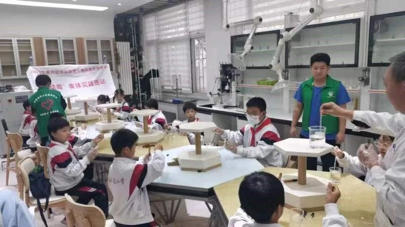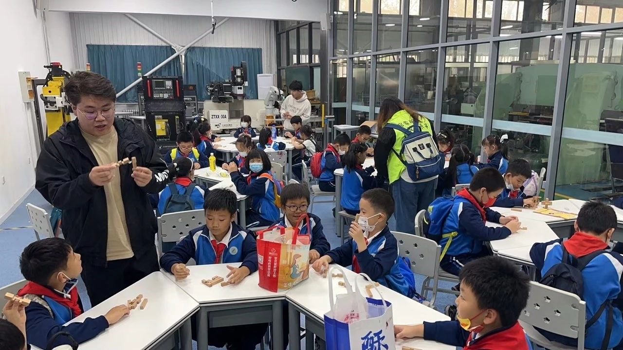 学院充分利用优秀师生、优势实训室和培训设备等资源,经过不断探索和开发,为“渤海之翼”劳动教育实践基地专门打造了适合中小学生的课程。在绿色生态虚拟仿真实训基地体验VR虚拟仿真技术;在非遗榫卯艺术鲁班锁体验课程中体验榫卯智慧和鲁班锁的拼插艺术;在智能车机器人课程中,体验智能车机器人搬运原理和编程语言;在机床发展史课程中,了解机床在我国工业发展过程中起到重要作用;在应急救援教育课程中,通过仿真教学体验灭火器的正确使用,参与模拟火灾逃生演练,提升安全意识的同时,还可以提高急救技能;在香水文化课程中,学习香水提取方法,香水发展历史,尝试调制属于自己的香水;在手工皂设计制作课程中,学习手工皂的原材料来源和制作过程,并与志愿者一起动手制作自己喜爱的手工皂;在会计职业技能体验课程中,化身“小小银行家”,了解货币历史、学习点钞技能、认识电信诈骗危害,树立理性的消费观、金钱观和正确的价值观;同时,学院大中小思政教育一体化教学团队以“长征精神伴我行”为主题,为孩子们精心准备了精彩的故事思政课,并以团队运球形式重走长征路,增加孩子们对伟大长征精神的了解。每门课程都是结合学院实践基地的先进设备设施进行了精心的设计,为学生锻炼意志、培养劳动精神和劳动品质奠定了基础。