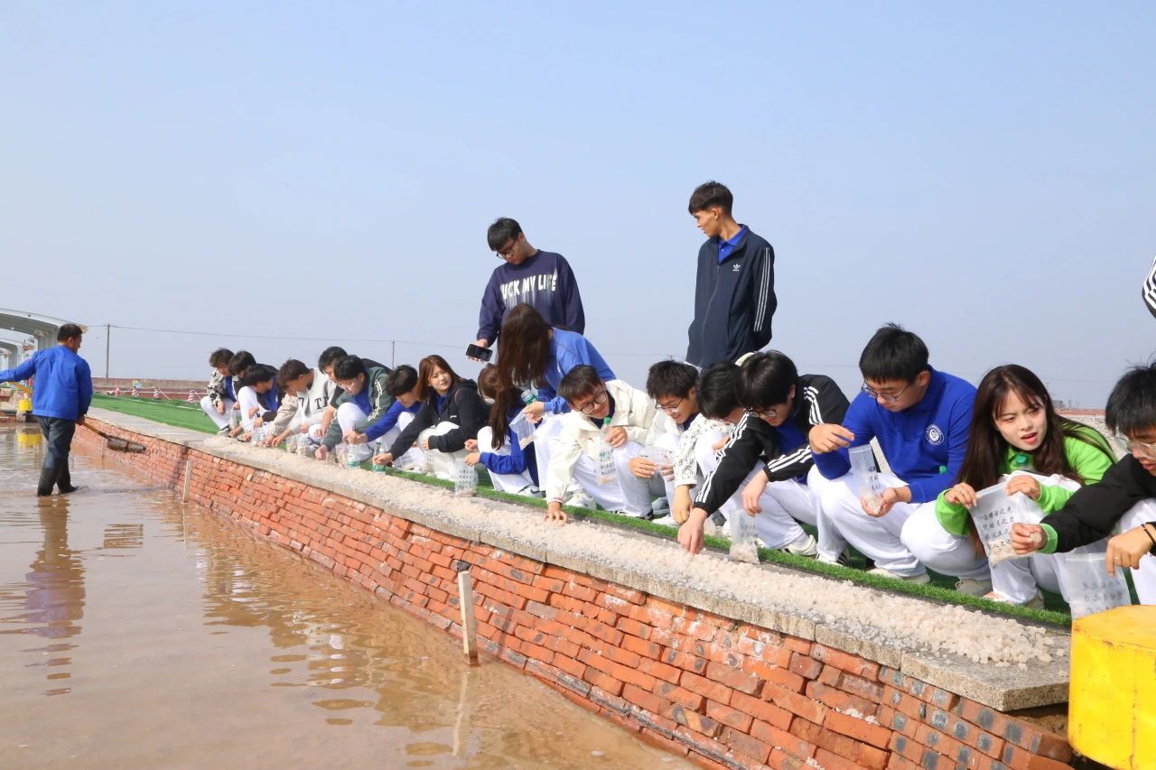 体验制盐工艺。在盐田体验区,特别邀请海晶集团制盐工艺专业首席专家李树林为同学们讲解海盐知识,同学们踏上雪白的盐山,亲身感受海水蒸发、晒盐收盐的繁复工艺,捻起海盐粒,在灿烂阳光的映照下,透过那一粒盐,仿佛穿越了时空的长廊,窥见了千年制盐技艺的悠悠历程。