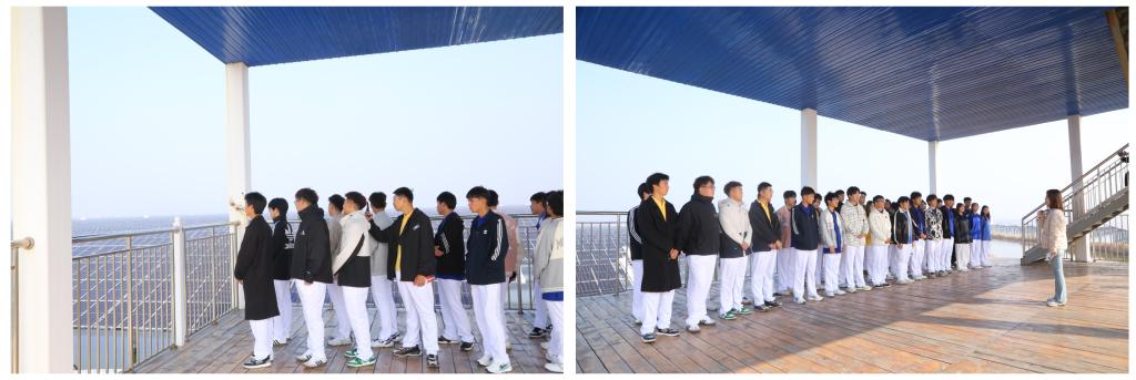 感受科技魅力。登上观景台,放眼万亩光伏,给同学们带来了强烈的视觉冲击力和震撼。
